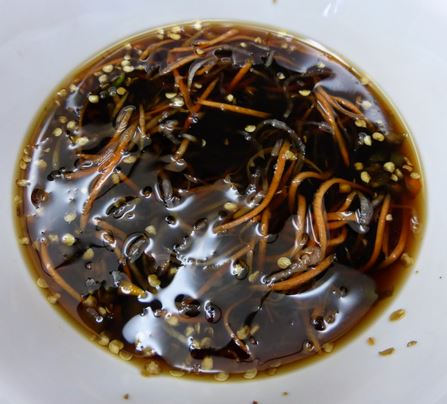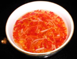 - Nấu nước sôi, nhiều ít tùy lượng cần dùng, cho giấm đường muối tiêu nước tương ngon vừa ăn, để nguội. Khi ăn, múc ra chén, cho tương ớt và.cà rốt vào trộn đều.