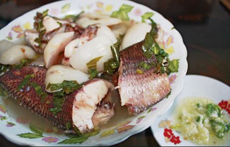 Cá làm rửa sạch, ướp muối, tiêu, bột ngọt trong 30 phút, sau đó chiên chín vàng đế ra đla.
