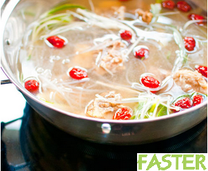 - Sau đó, đổ nồi hầm sườn sang nồi lẩu và đặt lên trên bếp gas mini. Bày ra bàn ăn cùng với miến, nấm đã chuẩn bị sẵn, cho hành lá vào cho nước lẩu thêm dậy mùi nhé.