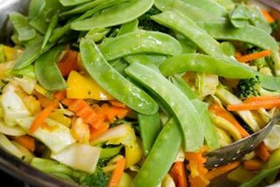 - Bắc chảo dầu khác lên bếp, phi thơm kiệu, bỏ cà rốt vào xào tái, cho đậu hà lan vào tiếp, để lửa lớn đậu mới xanh giòn, trút ra đĩa.