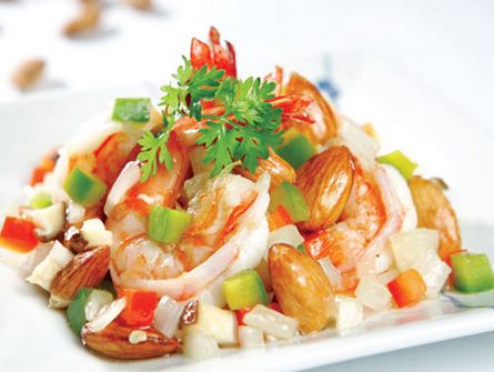 Múc đồ xào ra đĩa, rắc tiêu lên trên, chấm với nước mắm chanh, tỏi, ớt.