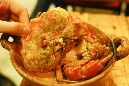 Gia vị: 1 muỗng xúp sả băm 1 muỗng xúp hành tỏi băm 1 muỗng cà phê bột nghệ hoặc 2 muỗng cà phê nghệ tươi băm 1 muỗng xúp lá chanh băm 10g bột cà ri Vố muỗng cà phê muối 2 muỗng xúp xì dầu. Trộn đều hỗn hợp gia vị vào ghẹ, đế qua 15 phút.